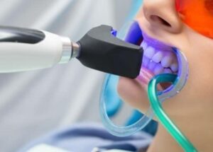 Realizado em consultório, o clareamento ocorre por meio da aplicação do gel clareador com alta concentração de peróxido potencializado pelo laser. Esta técnica é mais indicada para pacientes que necessitam de urgência no clareamento, sendo realizada em uma ou duas aplicações pelo dentista.