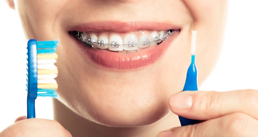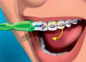 Com uma escova interdental, escove em volta dos bráquetes até remover toda a placa bacteriana
